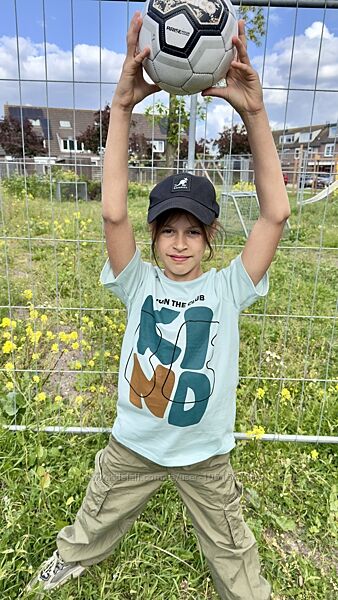 Футболка трикотажна , ,голубого кольору з принтом кольорових великих літер KIND від H&MРІСТ 134-140 ( спина-52 ПОГ -37 см ) СКЛАД - 100% бавовна