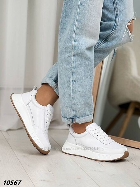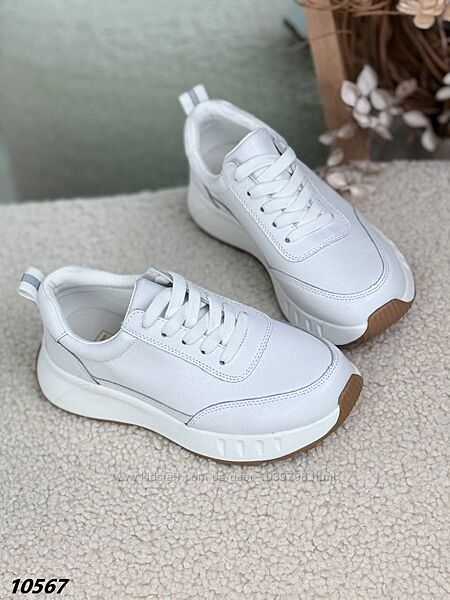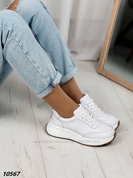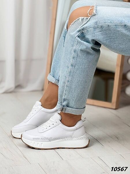 Кросівки Матеріал натуральна шкіра Матеріал підошви: Піна Колір білий На шнурівці Висота від п´яти 6 см Висота підошви позаду 4 см , попереду 2 см