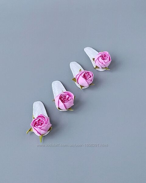 Подробное описание: Дитячі заколки з квітами, рожевого кольору.