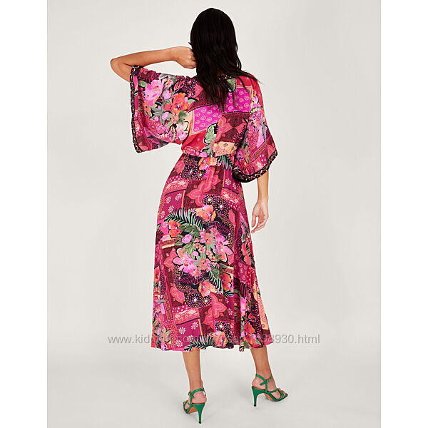 Ексклюзивна яскрава квіткова максі сукня-кімоно з віскози р.22