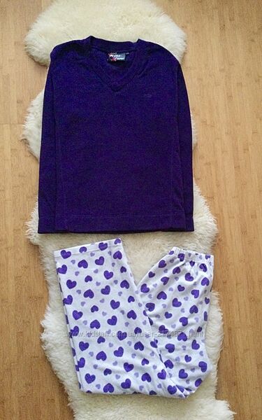 Флісова Піжама. розм L -XL зимовий Домашній комплект. флісовий реглан та флісові штаніки з принтом сердечок. стан ідеальний!Длина 69; подмышки 59; рукав от ворота 76; Длина 94 шаговый 69