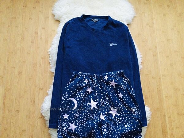 Love to Lounge Флісова Піжама з зірками в синьому кольорі розм L-XL зимовий Домашній комплект. флісовий реглан та флісові штаніки з принтом. стан ідеальний!Длина 74; подмышки 57; рукав от ворота 79; Длина 100; шаговый 73