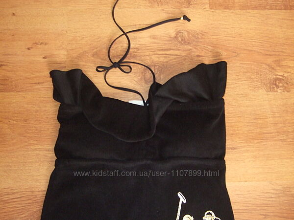 Верх на резинке - утяжке, которую можно завязать бантом или вокруг шеи. Завязка заканчивается золотыми металлическими шариками.
