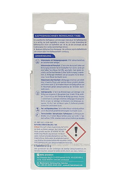 Dr. Beckmann Таблетки для чищення кавомашин ефективно видаляють кавові масла, жир і накип, забезпечуючи бездоганний догляд за побутовою технікою. Вони подовжують термін служби пристрою та зберігають якість напою. Просте застосування та потужна дія — для чистоти і ароматної кави щодня!Другие объявления продавца
