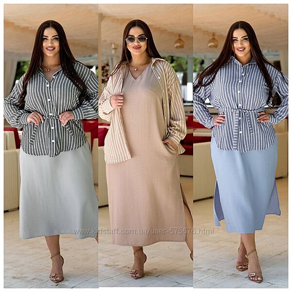 Подробное описание: р.50 до 60р. Комплект літня сукня та рубашка лляний костюм