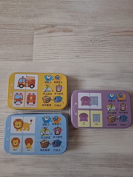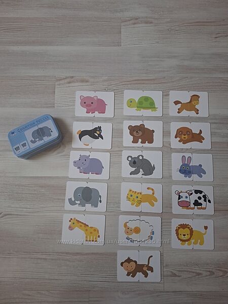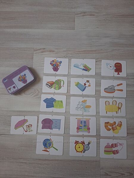 Продам интересные, качественные развивающие наборы пазлов-половинок. В наличии такие виды: "Транспорт", "Животные" и "Предметы". Очень удобно их хранить, они упакованы в жестяную коробку. Все карточки выполнены из очень плотного картона, картинки четкие, яркие. Развивает навыки координации рук и глаз, улучшает скорость, расширяет знания. К каждому отдельному изображению идет две карточки, с одной стороны, это пазл из двух частей, с другой стороны, изображено, как предмет выглядит целым и в разрезе, название на английском языке. В каждом наборе 16 картинок и 32 карточки. Цена любого набора: 250 грн.Наборы новые, в коробках, коробки в упаковочном пакете.