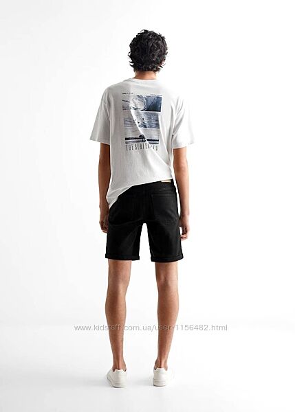 Шорти для хлопчика з підліткового відділу від бренду MangoТканина 100% бавовна. Джинсова тканина. Прямий крій. Переднє застібання на блискавку та ґудзик. Кишеня для монет. Дві передні кишені. Дві накладні кишені ззаду. Петлі для ременя.