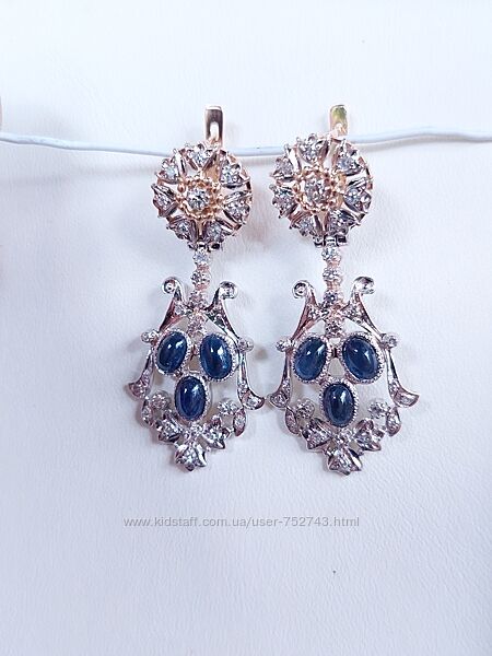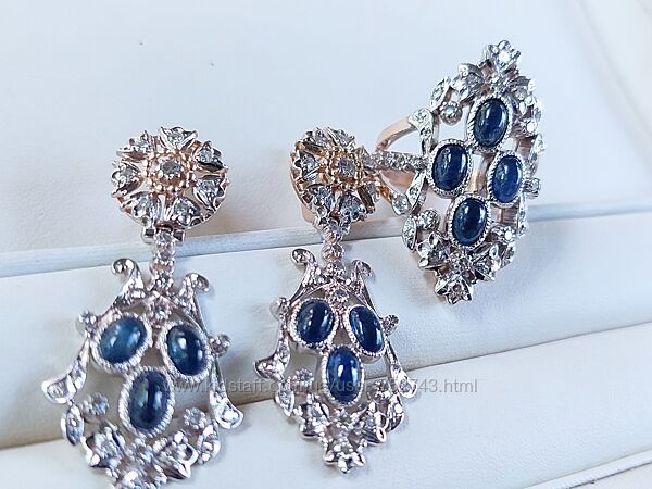 Подробное описание: Золотые серьги и кольцо 585 пробы с бриллиантами и сапфирами