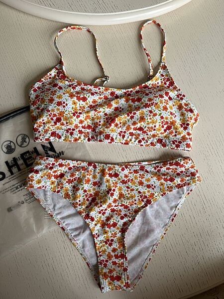 Shein раздельный купальник бикини топ размер S-М 13-17 лет цветы цветастый