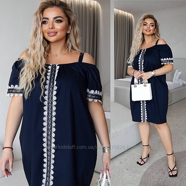Подробное описание: р.48 до 62р. Сукня оверсайз турецький котон та мереживо