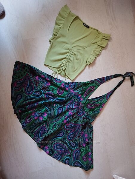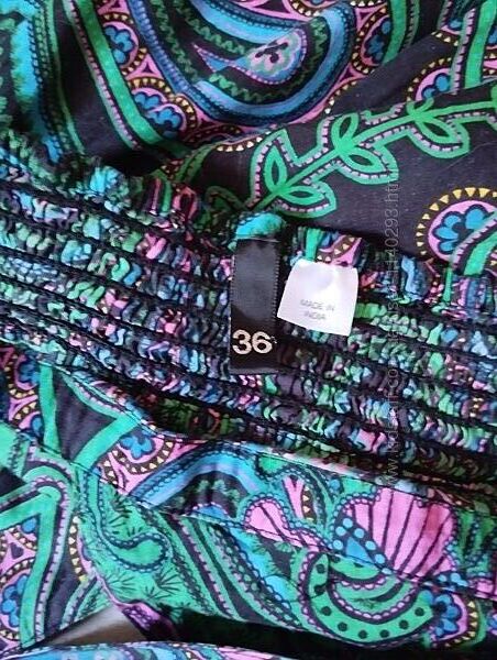 Продаю фееричный яркий летний топ для девочки- подростка или стройной девушки ( на маленькую грудь ).Модель разлетайка с открытой спинкой, Хлопок, рисунок пейсли. В европейском размере 36.