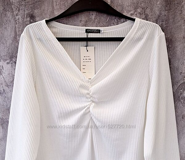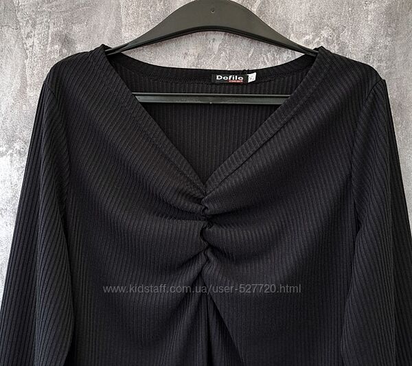 Жіноча трикотажна кофта лонгслів. Модель прилеглого силуету, довгий рукав, v-подібний виріз, в ділянці грудей присборено резинкою.Країна-виробник: Україна