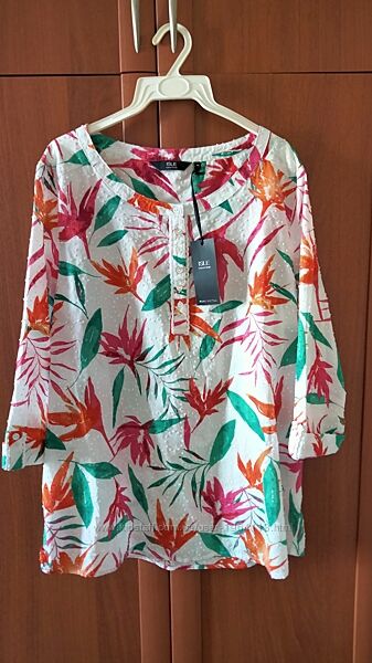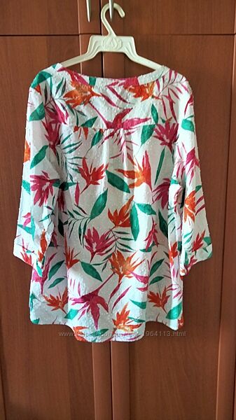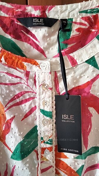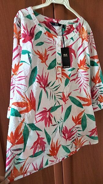 Нова яскрава бавовняна блуза з колекції Isle. Рукава короткі (подовжені). багатобарвна кольорова гама. Круглий виріз. Спереду на гудзиках до половини. Розмір XL-XXL. Орієнтуйтесь по замірахН/о груди - 58см