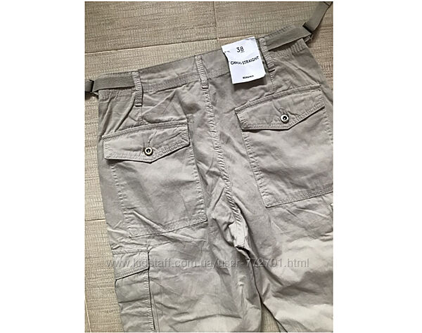 Подробное описание: Летние брюки-карго, хлопок, регулируемая талия, Вershka cargo straight. 38