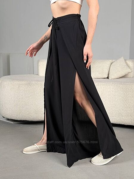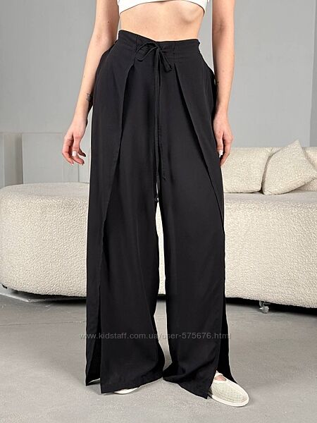 Подробное описание: р.42 до 60р. Штани палаццо з штапелю з розрізами по нозі