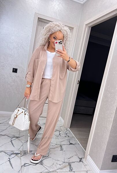 Подробное описание: Жіночий костюм брючний літній жатка Остін