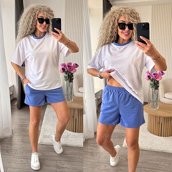 Подробное описание: 42-46, 48-52 літній костюм двійка біла футболка та шорти