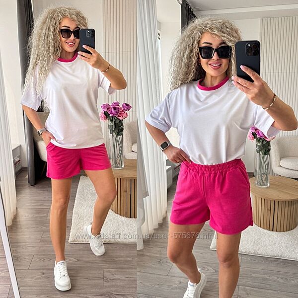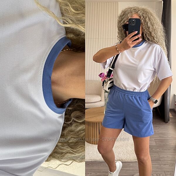 Стильний літній костюм двійка ( шорти+ біла футболка)Якість
