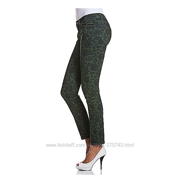 Джинсы ROsW, Германия, указан размер 42 , модель LANA , слим, темно-зеленого цвета с узором черного цвета.