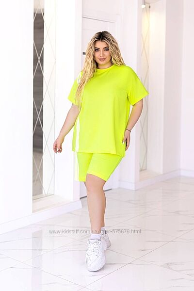 Подробное описание: р.50 до 60р. Стильний костюм двійка футболка та шорти двунитка