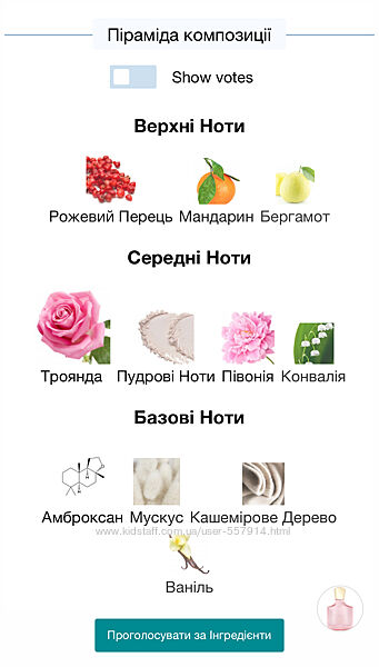 Нота серця: Конвалія, Пудрові ноти, Півонія, Троянда