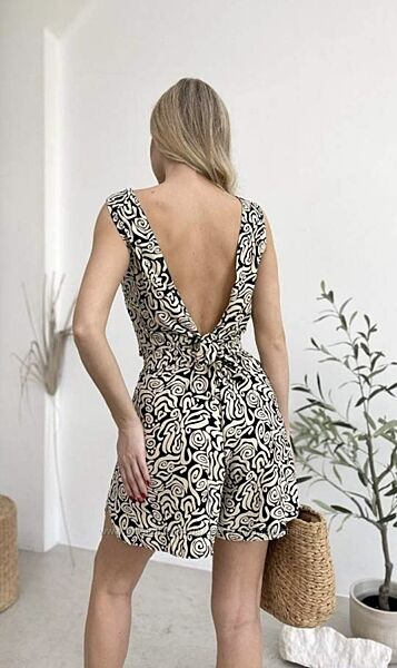 Костюмчик в поєднанні топа і шорт. Топ з відкритою спинкою, регулюється зав´язками.Шорти вільного крою.