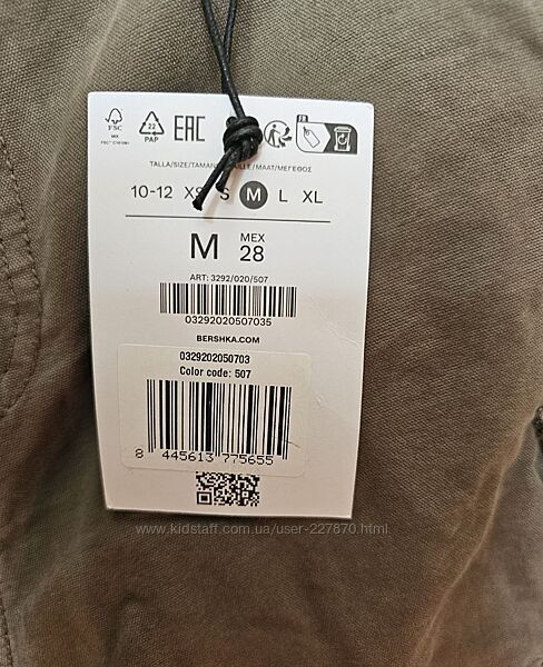 Шорти Bershka р.М, колір хакі. Довжина 46 см, бедра 54 см. Нові, з бірками.Другие объявления продавца