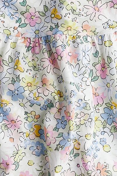 Сукня без рукавів з бавовняного трикотажу з набивним малюнком. Зібраний шов на талії та розкльошена спідниця.Довжина: до колін