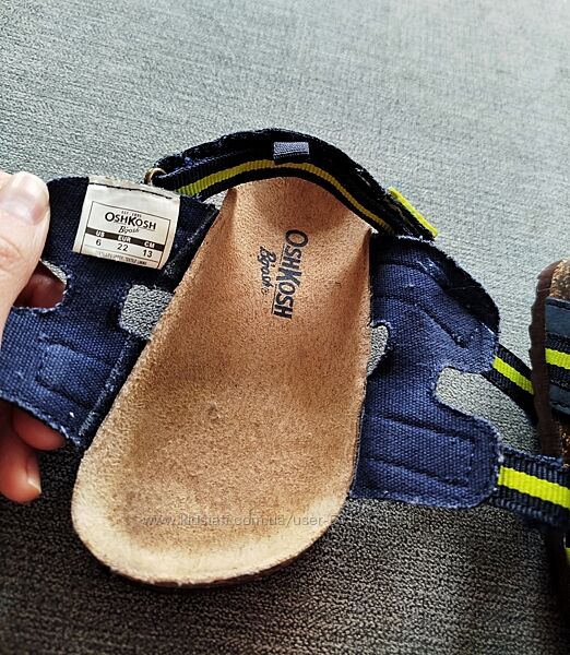 Босоніжки для хлопчика від американської марки Oshkosh. Дуже зручні, по типу Birkenstock. Добре захищають ніжку дитині за рахунок бортиків. Фіксуються на нозі трьома ремінцями на липучці. Можно відрегулювати босоніжок у всіх напрямках.Стан нового взуття. На підошві навіть лишилися захісні флоксовані ділянки з нанесенням ворсинок для доказу відсутності носіння.