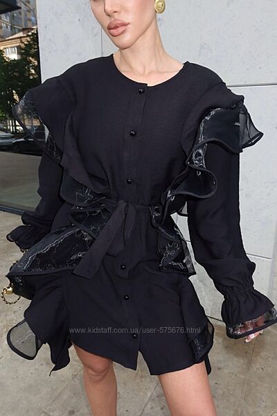 Подробное описание: XS, S, M, L Жіноча коротка сукня льон-жатка, оздоблення органза
