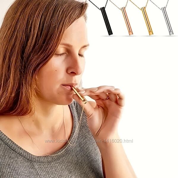Повільно вдихайте носом, рахуючи 1, 2, 3, 4, і повільно видихайте через кулон, рахуючи 1, 2, 3, 4, 5, 6. Його спеціальна форма регулює потік повітря, подовжуючи видих, що природним чином активує парасимпатичну нервову систему, яка відповідає за розслаблення. Це як маленький якір спокою, що завжди з вами.