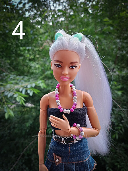Яскраві прикраси на резинках, дуже зручно знімати і одягати. Підходять будь яким 1/6 лялькам. Ручна робота.Ціна набору кольє+браслет 30 грн. За всі 8 наборів 200 грн