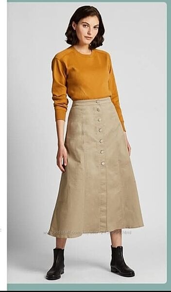Подробное описание: Юбка Uniqlo джинсовая макси миди трапеция. Юбка бежевая джинс