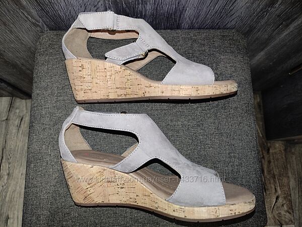 Подробное описание: Кожаные босоножки на танкетке нубук Clarks 24,2 см