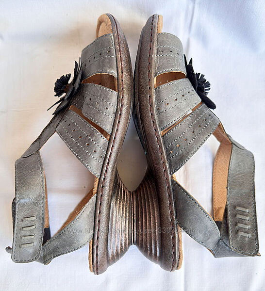 827. Дуже м´які та комфортні босоніжки датського бренду "Mary B comfort " у відмінному стані без недоліків: чисті, акуратні, без сторонніх запахів, підошва без зносу - просто пару раз взутіКолір сірий з ледь помітним зеленим підтоном