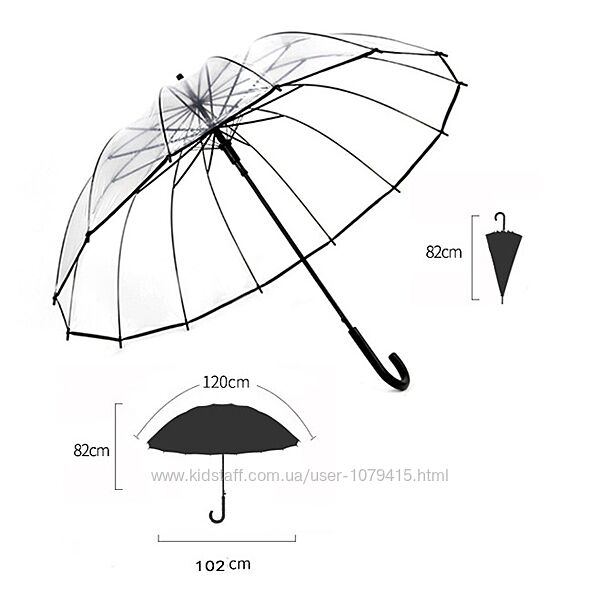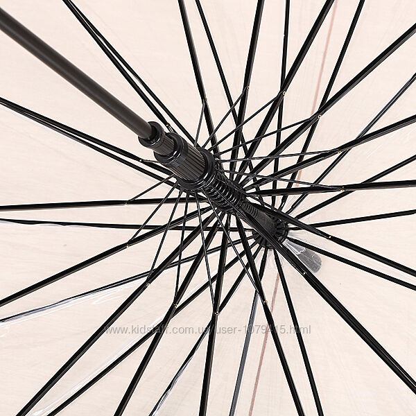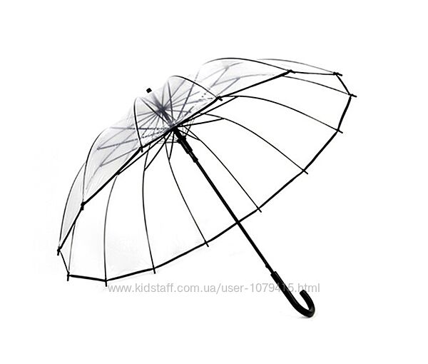 Большой прозрачный зонтик-трость на 16 спицЕго прозрачный купол сочетает элегантность и функциональность. С прозрачным куполом вы получаете надежную защиту от дождя, сохраняя при этом видимость.