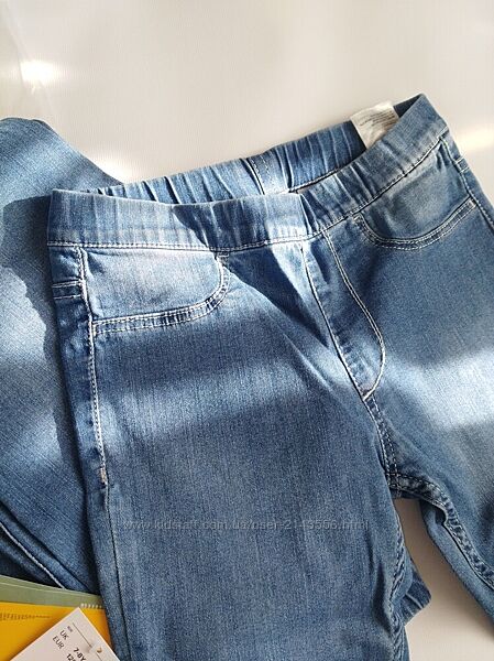 В наявності чудові легенькі джинсові леггінси для дівчинки від торгової марки H&M. Пояс на резинці ( всередині не регулюється). Кишені 2і - ззаду. Склад 70% бавовна + 27% поліестер + 3% еластан.