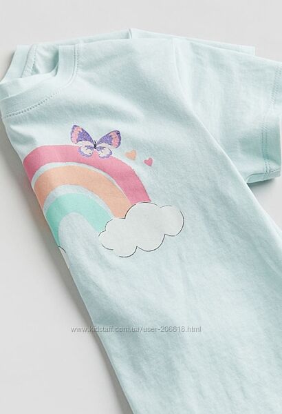 В наявності 😻 красиві футболки Н&М для дівчаток 🩵пошиті з бавовни та прикрашені насиченим принтом 🌈чудова якість 🤗 розмір :98-104 см -2-4 рочки