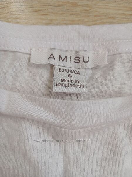 Продам нова жіночу білу футболку Amisu розмір S, але і на М підходить (більшемірить). Тканина дуже хороша, якісна, придбана у магазині New Yorker. Жодного разу не носила. Купила без примірки, але на жаль мені не підійшла, тому продаю. Етикетку поспішила зняти((Повна передплата на карту.