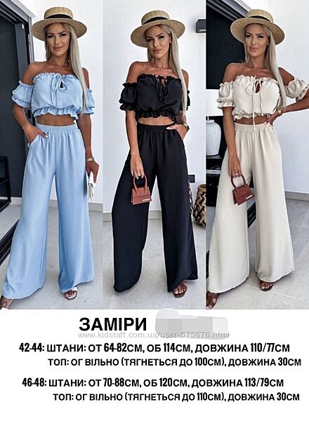 Подробное описание: 42-44, 46-48 Жіночий костюм-двійка літній брючний з топом
