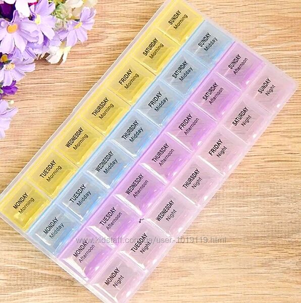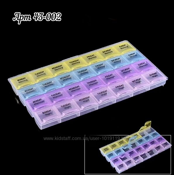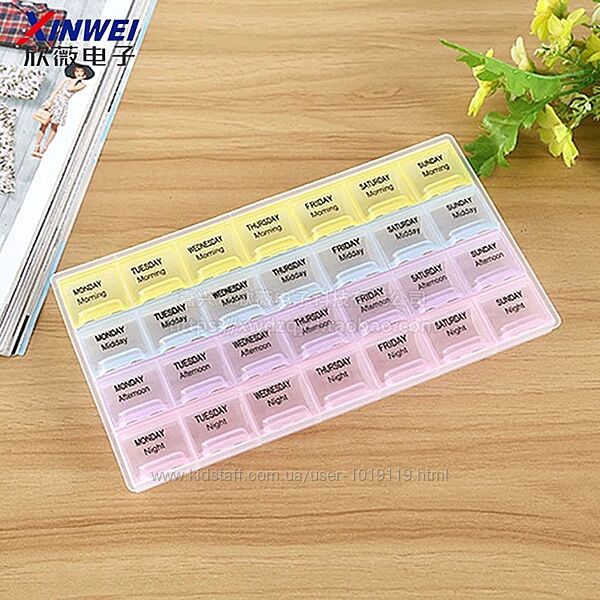 Подробное описание: Універсальний органайзер на 28 комірок 4 секції на день Таблетниця
