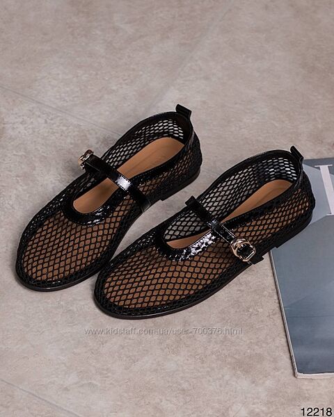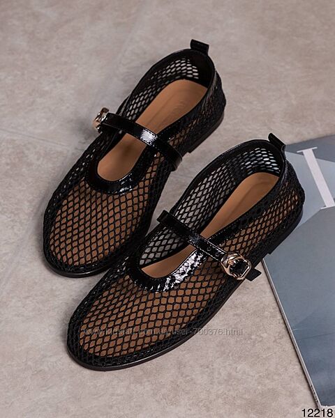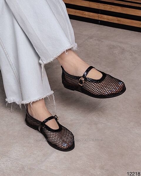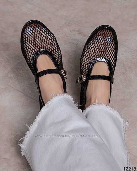 Балетки, натуральна італійська лакована шкіра/сітка, чорні. Всередині шкіряний підклад . Висота підошви 1/0.5 см. Розмір в розмір. Розмірний ряд: 36-40. Український виробник.
