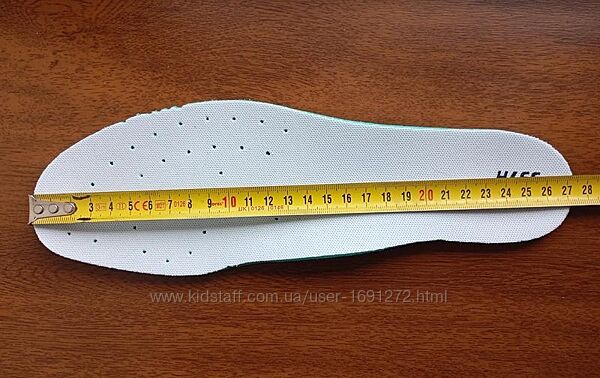 US 10 , UK 9.5, EUR 44, CM 28 довжина устілки від краю до краю 28.1 см і ширина 9.3 см