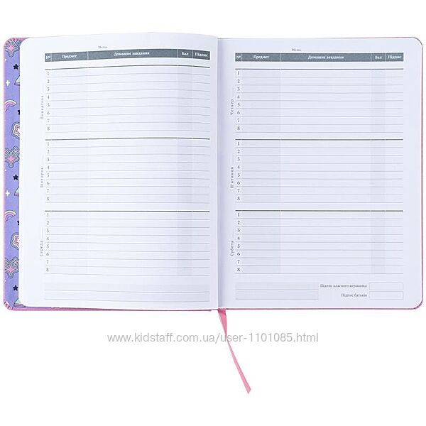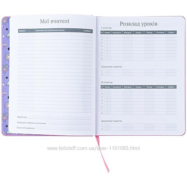 внутрішній блок на 46 тижнів з табелем, полем для персональних даних, полем для списку вчителів та Державною символікою;