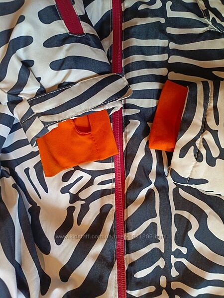 Карманчики, внизу на кулиске, кнопки, флис, капюшон отстёгивается, манжеты с дырочками для пальцев.