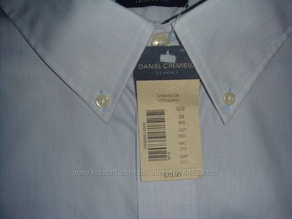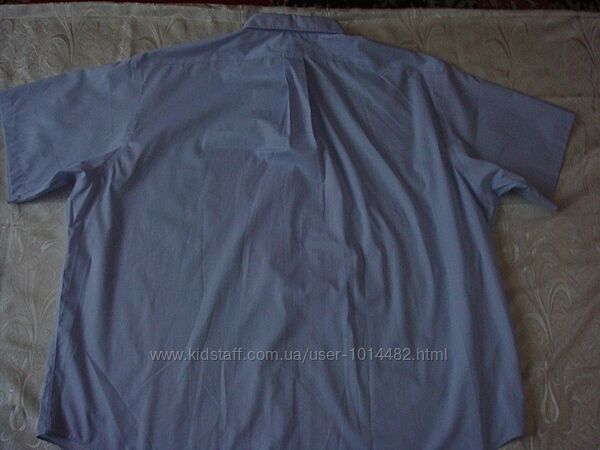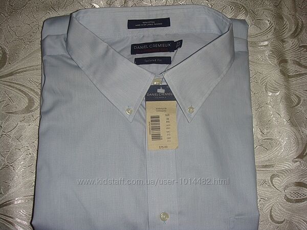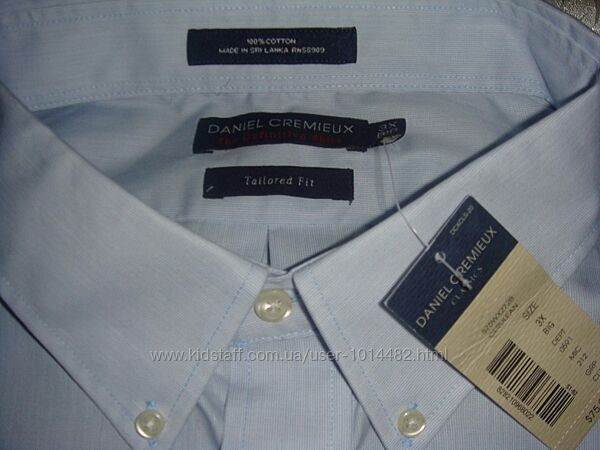 Фірменна теніска 3Х Daniel Cremieux. 100% котон, чудової якості. Ніжно сизо-голубого кольору в дуже мілку полоску. З карманом на лівій полі, зі складкою по спинці, на кокетці, ворот на гудзиках і планкою по полочці. Всі шви оброблені в чистий край. Заміри: довжина - 90см, ширина спинки — 70см, ширина плеча - 21см, довжина рукава - 28см, напів обхват руки по низу рукава - 27см/54, глубина пройми - 35см, ширина від пройми до пройми - 85см(х2), довжина по вороту - 54см. Куплена на розпродажі у США в фірменному магазині. Оплата і відправка за домовленістю. PS.: Теніски цього бренду б/у – 20$. В моїх об´явах ще є бежева в маленьку клітинку.