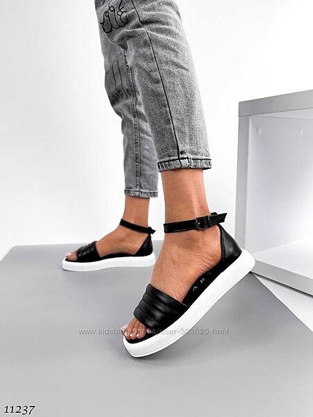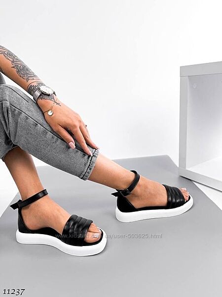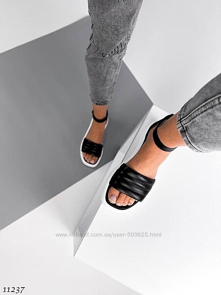 Подробное описание: Чорні жіночі шкіряні босоніжки на білій підошві, закрита п´ятка