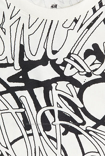 Футболки , бежевого кольору з чорним принтом графіті від H&MСКЛАД 100%- бавовна ,