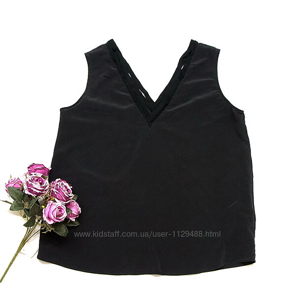 Такая базовая универсальная штучка хоть на каждый день, хоть для торжественных случаев, как самостоятельная вещь, так и нижний слой под что угодно. Топ свободного кроя, выполнен из натурального "мокрого шелка", в черном цвете. Ткань плотная, струящаяся, бархатистая, очень приятная к телу, дышащая. Вырез уголком, по спинке и по переду, декорирован лентой с оригинальными декоративными прорезями, низ закруглен. Сшита очень аккуратно и качественно, как и положено вещи премиум класса.
