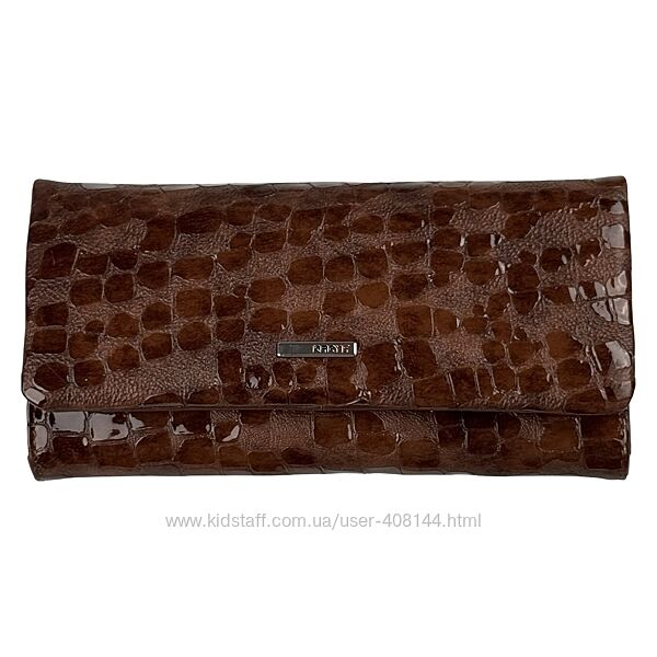 Гаманець жіночий шкіряний лакований Karya 1159-594 коричневий✔️ Матеріал: натуральна шкіра лакована, принт під рептилію;